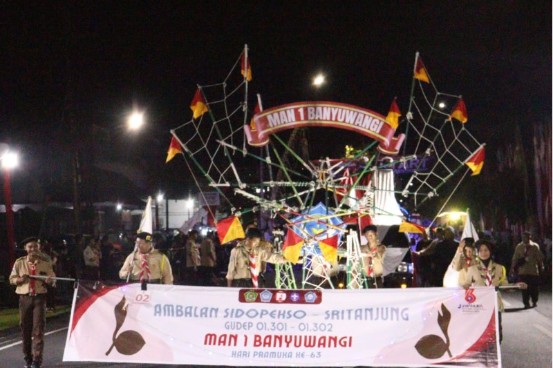 Jurnalis Mansawangi–Pemkab (Pemerintah Kabupaten) dan KwarCab (Kwartir Cabang) menggelar Pawai Lampion dalam rangka memperingati Hari Praja Muda Karana (Pramuka) ke-63, Selasa (20/8/2024). Madrasah Aliyah Negeri (MAN) 1 Banyuwangi dalam hal ini juga turut memeriahkan dengan mengusung tema Pramuka Berjiwa Pancasila Menjaga NKRI.