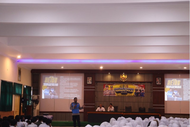 Polresta Banyuwangi memberikan sosialisasi terkait pendaftaran dan penerimaan Polri 2025 di Madrasah Aliyah Negeri (MAN) 1 Banyuwangi, Selasa (27/8/2024). Materi disampaikan langsung oleh IPDA Edy Hariyanto S.H selaku Kadubbag dalpres SDM Polresta Banyuwangi.