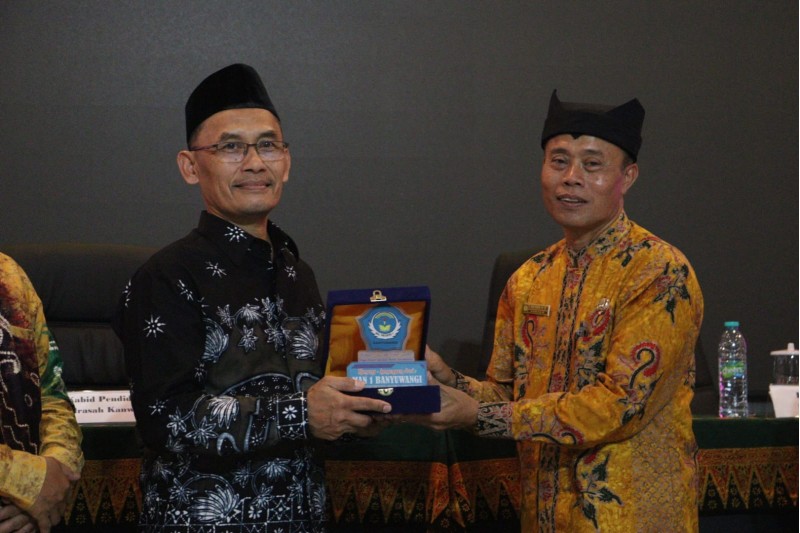 Jurnalistik Mansawangi — Sebagai bentuk kenang-kenangan sekaligus simbol eratnya persaudaraan, Madrasah Aliyah Negeri (MAN)1 Banyuwangi menyerahkan cinderamata kepada Kelompok Kerja Madrasah Aliyah (KKMA) Daerah Istimewa Yogyakarta dalam rangkaian kegiatan Silaturahmi dan Studi Tiru, Sabtu (27/9/2025).