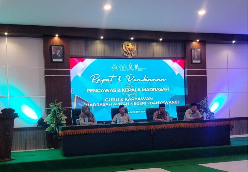Sabtu, (4/10) sedang berlangsung kegiatan rapat dan pembinaan oleh pengawas madrasah, Askhab, S.Ag., M.Pd.I. Kegiatan berlangsung di Aula MAN 1 Banyuwangi, diikuti oleh seluruh pendidik dan tenaga kependidikan.