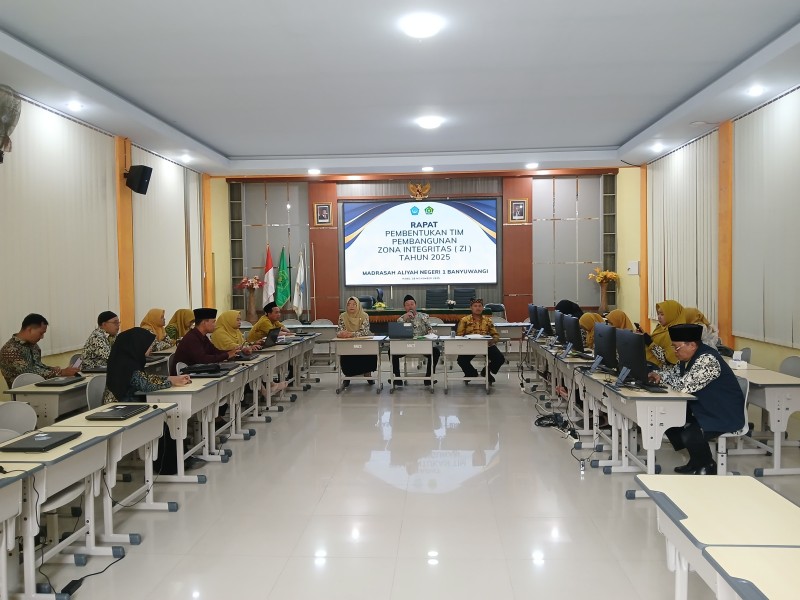 Humas - MAN 1 Banyuwangi menegaskan komitmennya mendukung penuh Program Zona Integritas (ZI) Kementerian Agama Kabupaten Banyuwangi melalui pelaksanaan Rapat Pembentukan Tim Pembangunan Zona Integritas Tahun 2025, Rabu (26/11). Kegiatan ini berlangsung di Ruang Meeting MAN 1 Banyuwangi mulai pukul 13.00 WIB, diikuti jajaran pimpinan, guru, dan tenaga kependidikan.